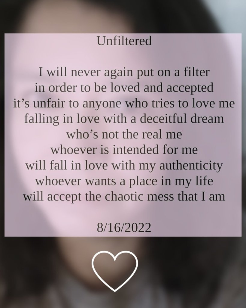Day 16 of this doing this 31-day prompt poetry challenge. The prompt of today is “Never Again”. Unfiltered Share this:Tweet Click to print (Opens in new window) Print Click to share on Reddit (Opens in new window) Reddit Share on TumblrPocketLike Loading... Related
