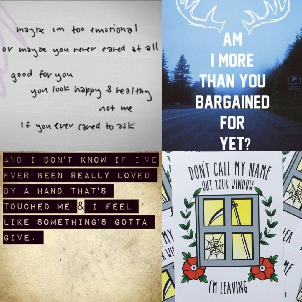 This playlist that I will share is titled: “For the Brokenhearted: Sad Edition (the one where you cry). I don’t handle breakups very well. Actually, I handle them poorly and go kind of nuts. Music helps me cope with the multitude of emotions I have. This playlist is the kind of playlist you play out loud in your car or at home with your headphones as you write mediocre and sad poetry. This playlist is based on the disastrous and heart wrenching breakups I’ve had throughout my life. These are songs I go to when I’m feeling numb or the waves of sadness come. I’ve put in bold the ones that I like to put on repeat.